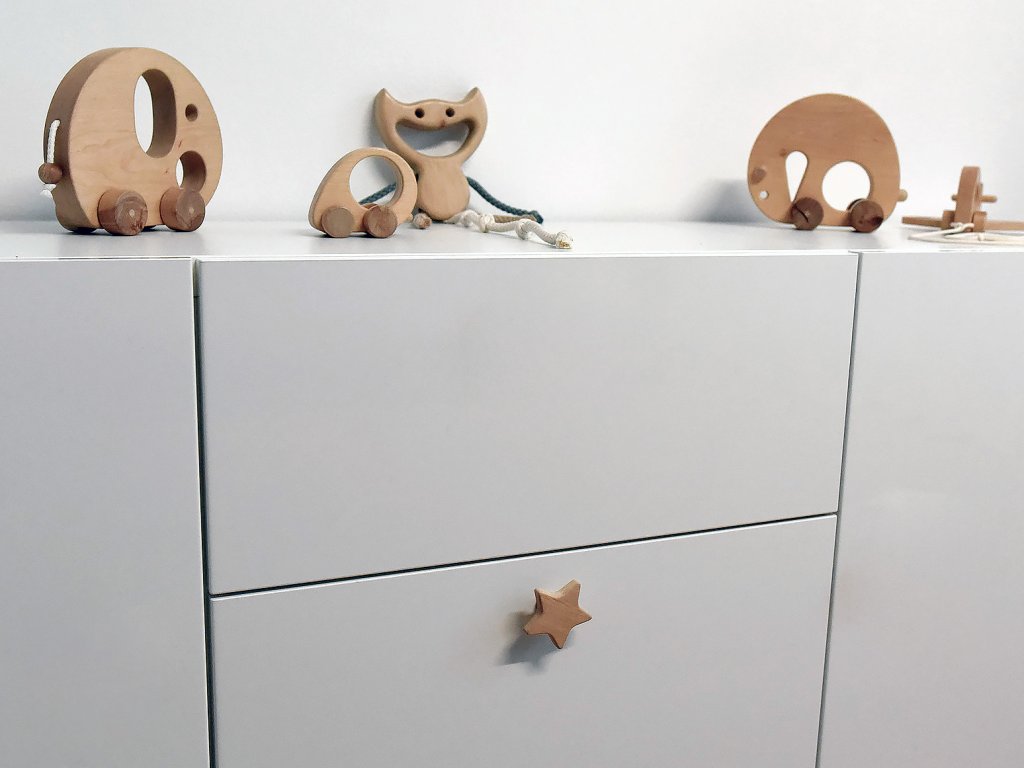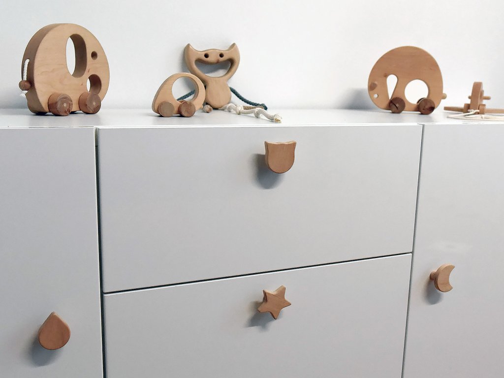 Úchytky nabízíme ve tvaru sluníčka, mráčku, hvězdičky, měsíčku, kapky a hlavy kočky.
